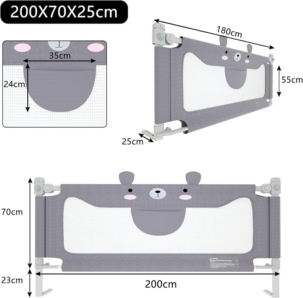 Froadp Rausfallschutz Baby Bettgitter 200cm Schutzgeländer, Höhenverstellbar Kinderbettgitter mit Do