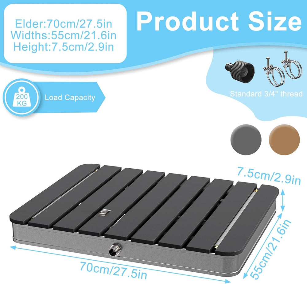 Gartendusche Campingdusche Aluminium & WPC Bodendusche Holzfarbe Saunadusche mit rutschfeste Standfl