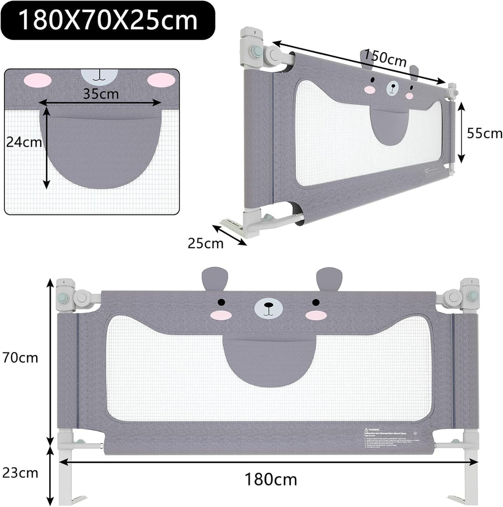 Froadp Rausfallschutz Baby Bettgitter 180cm Schutzgeländer, Höhenverstellbar Kinderbettgitter mit Do