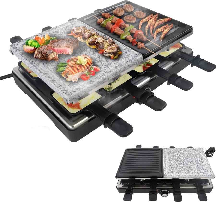 Froadp Raclette Grill mit Naturgrillstein und Grillplatte Antihaftbeschichtung Tischgrill Elektrisch