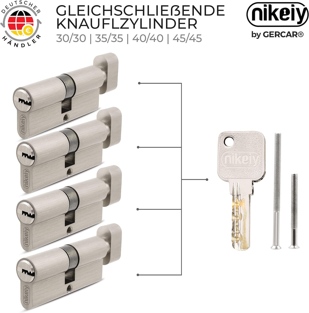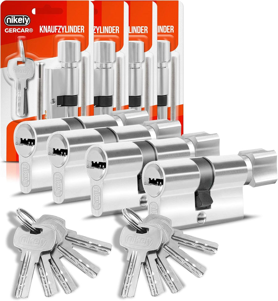 GERCAR Pro Gleichschliessend 4 Knaufzylinder 30/30 Set 4x Schliesszylinder mit Knauf inkl. 20 Schlüs