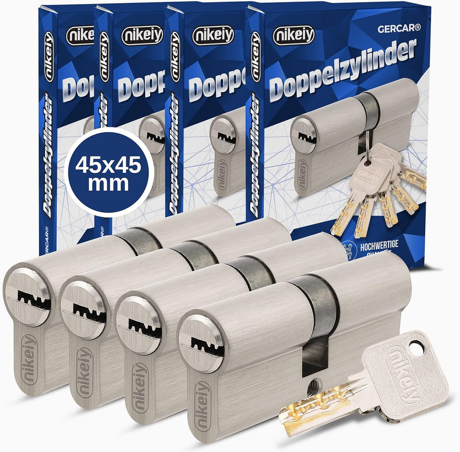 GERCAR Profilzylinder 45/45 - Doppelzylinder mit 10 Schlüssel - 4 Stück gleichschliessend - Länge 90