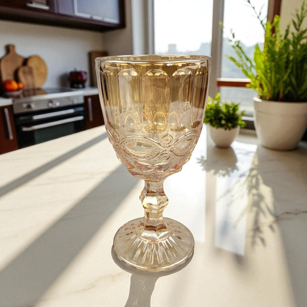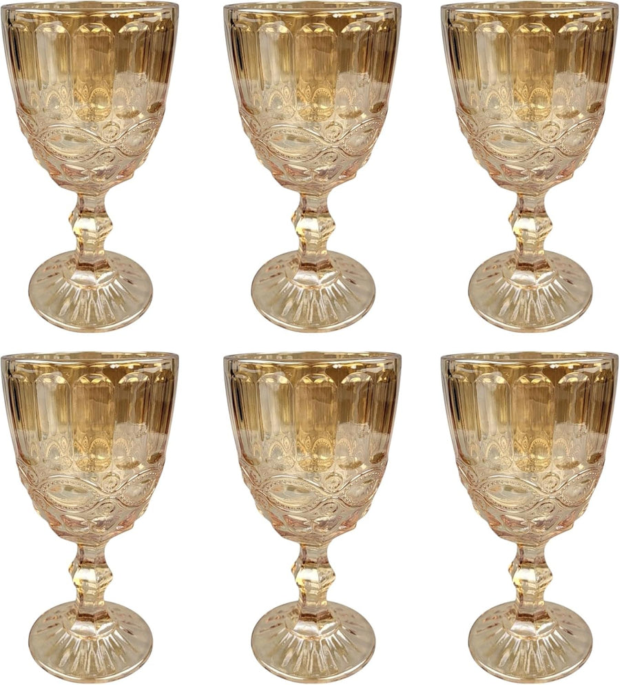 Vintage 6er-Set Farbige Weingläser Trinkgläser mit Prägung (Schleife/Apricotglanz/250 ml) Hochzeitsg