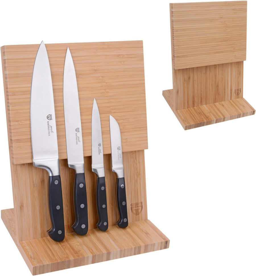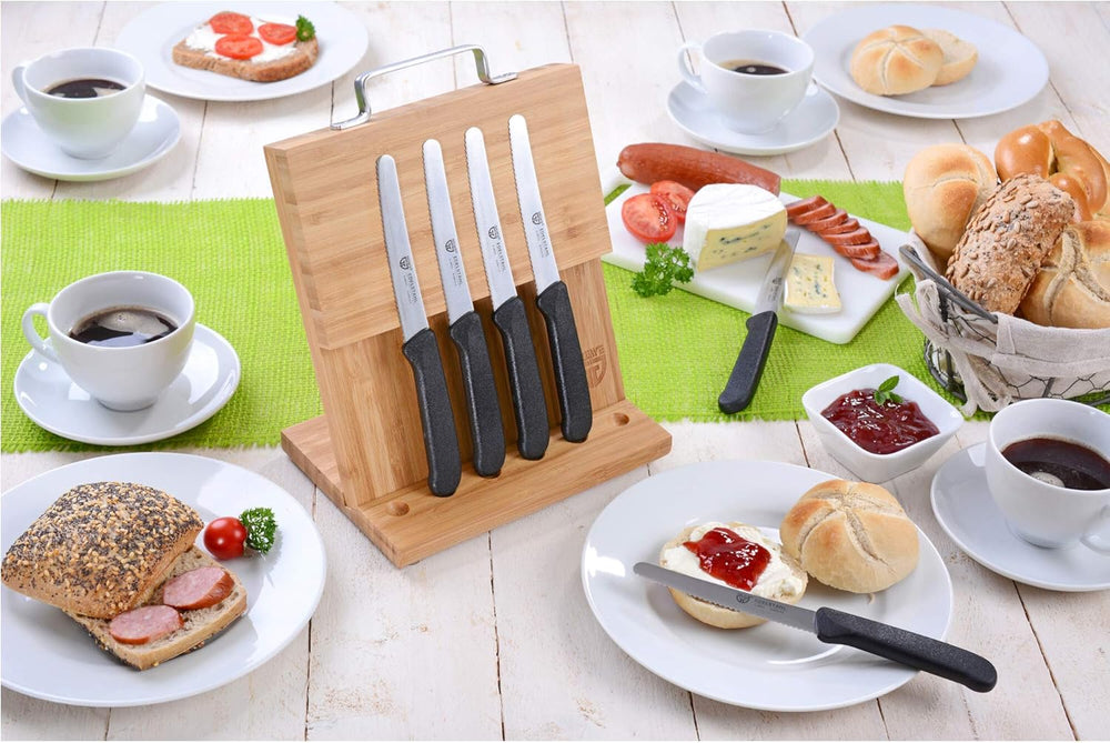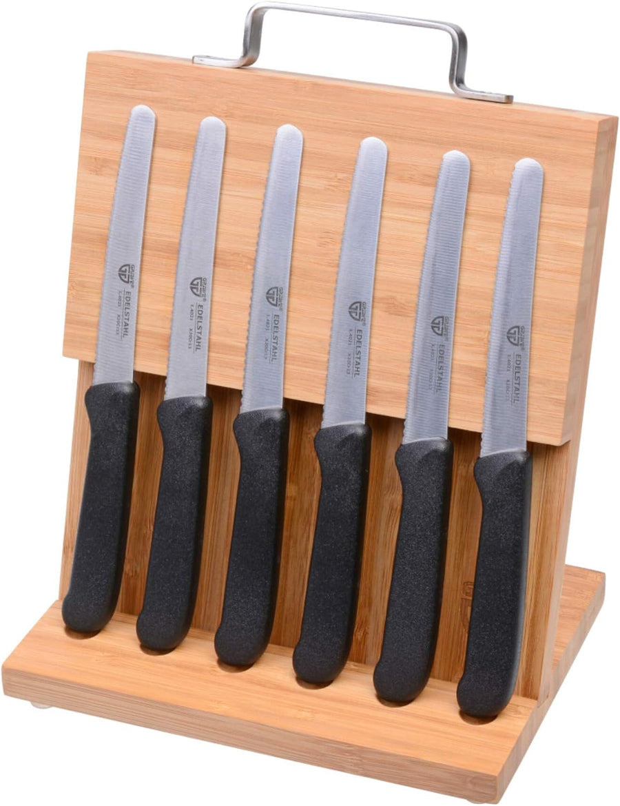 GRÄWE Magnet-Messerhalter Bambus mit Brötchenmessern schwarz Schwarz 6er Messerset inkl. Messerblock