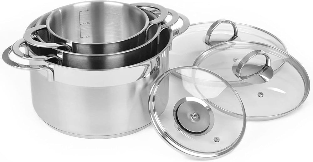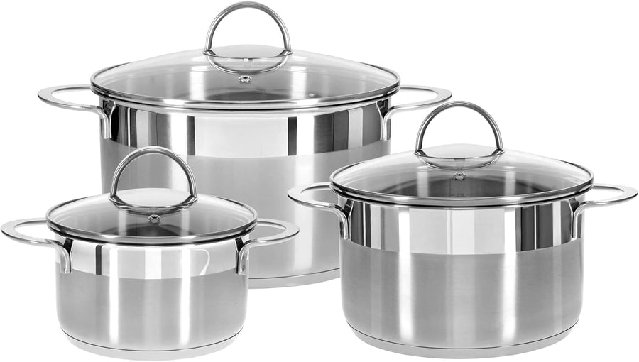 GRÄWE Kochtöpfe inkl. Glasdeckel, 3er Topf-Set, Ø 16 cm (1,5 Liter), Ø 20 cm (3 Liter), Ø 24 cm (5 L