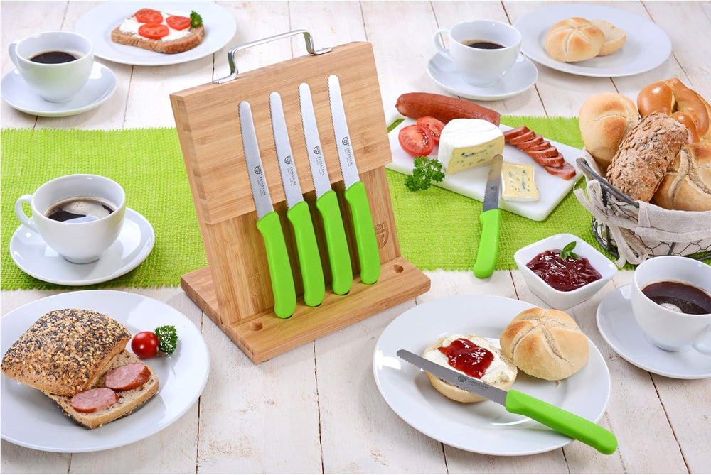 GRÄWE Magnet-Messerhalter Bambus mit Brötchenmessern grün Grün 6er Messerset inkl. Messerblock, Grün
