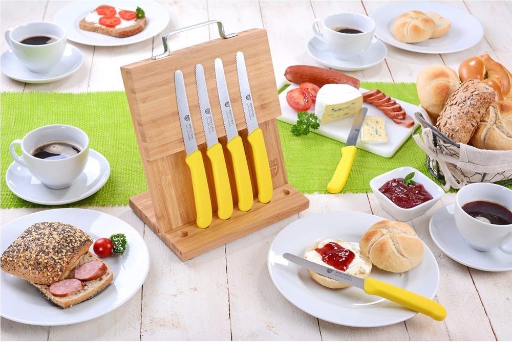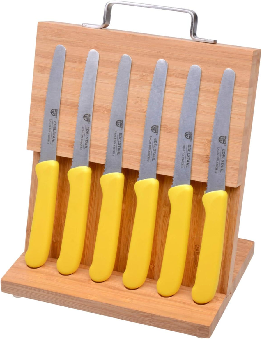 GRÄWE Magnet-Messerhalter Bambus mit Brötchenmessern gelb Gelb 6er Messerset inkl. Messerblock, Gelb