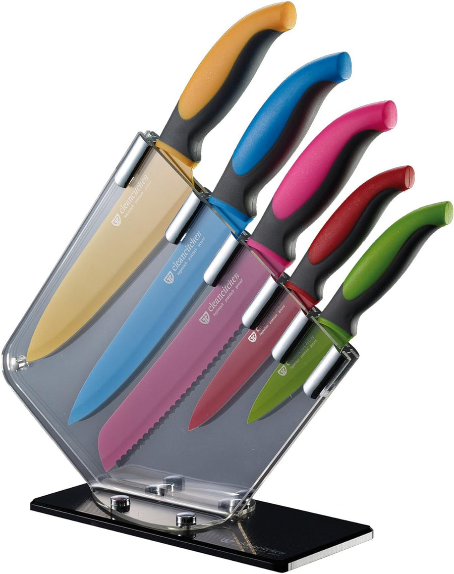 GRÄWE Messer-Set 6-teilig, bunt, Antihaft-Klingen, rutschfeste Griffe, Acryl-Messerhalter, Kochmesse