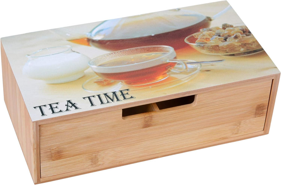 GRÄWE Teebox aus Bambus mit 4 Fächern, Teebeutelbox mit Schublade für aromageschützte Aufbewahrung v