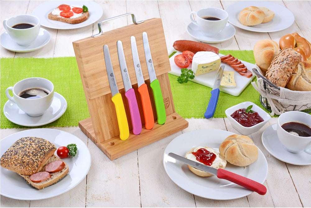 GRÄWE Magnet-Messerhalter Bambus mit Brötchenmessern bunt Bunt 6er Messerset inkl. Messerblock, Bunt