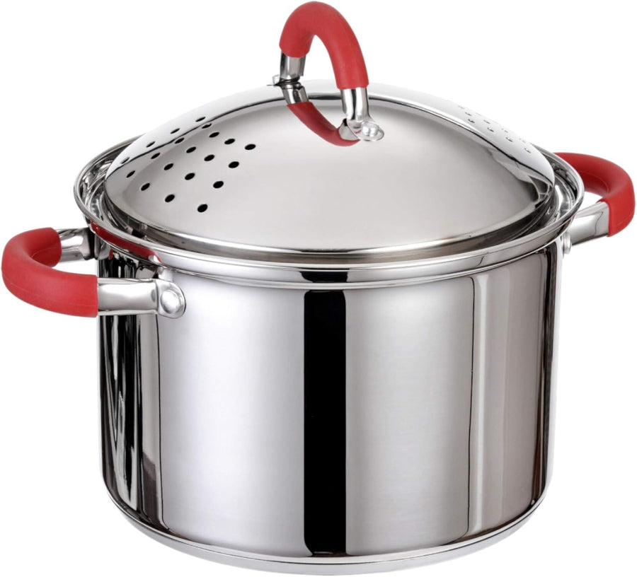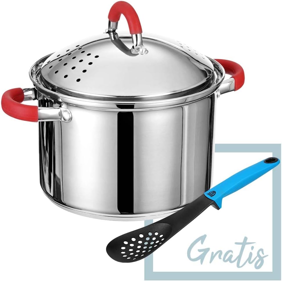 GRÄWE Nudel-Kochtopf 22 cm, Pasta-Topf, 5 Liter mit Skala, Edelstahl mit Ausgiess-Deckel