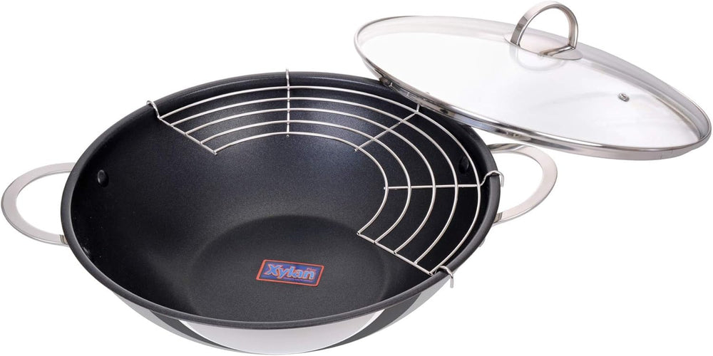 GRÄWE Wok-Set 32 cm mit Beschichtung, mit Glasdeckel und Ablagegitter Xylan Beschichtung, Xylan Besc