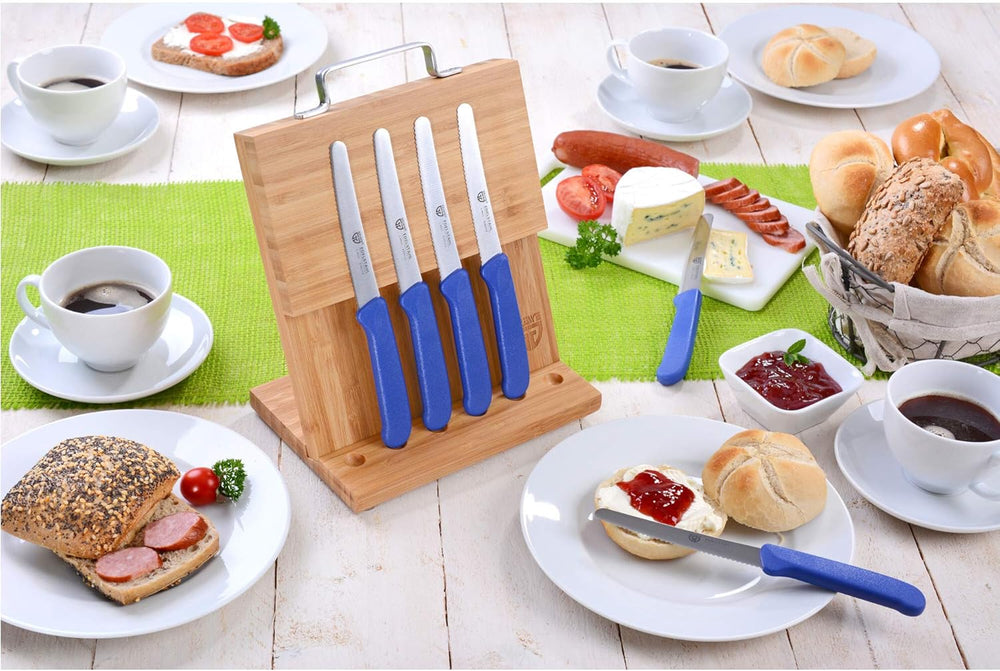 GRÄWE Magnet-Messerhalter Bambus mit Brötchenmessern blau Blau 6er Messerset inkl. Messerblock, Blau