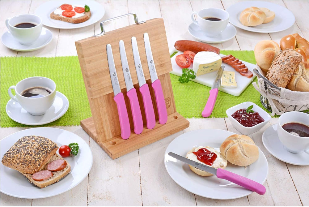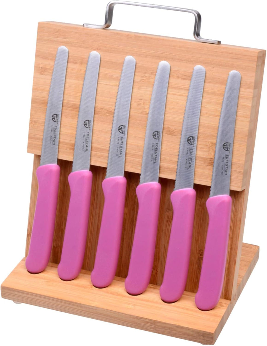 GRÄWE Magnet-Messerhalter Bambus mit Brötchenmessern pink Pink 6er Messerset inkl. Messerblock, Pink