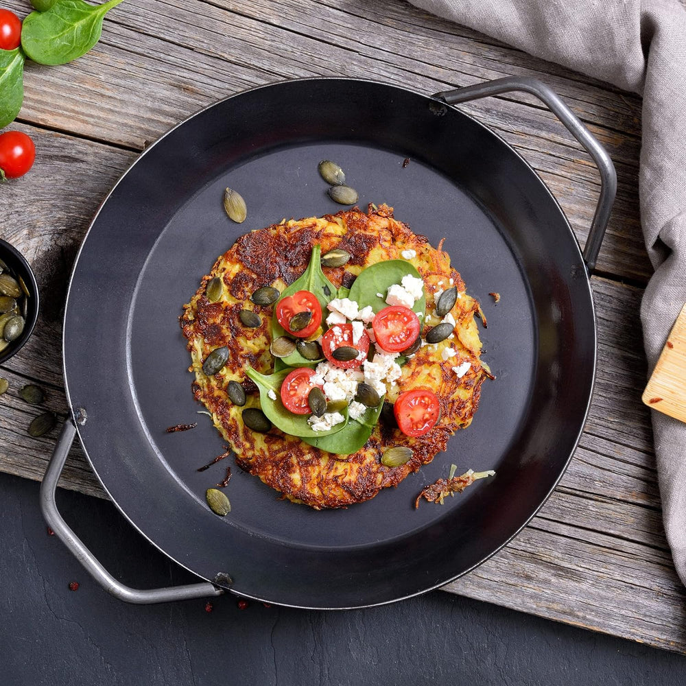 GRÄWE® Profi schmiedeeiserne Servierpfanne (/) 28 cm mit 2 Griffen GLATT