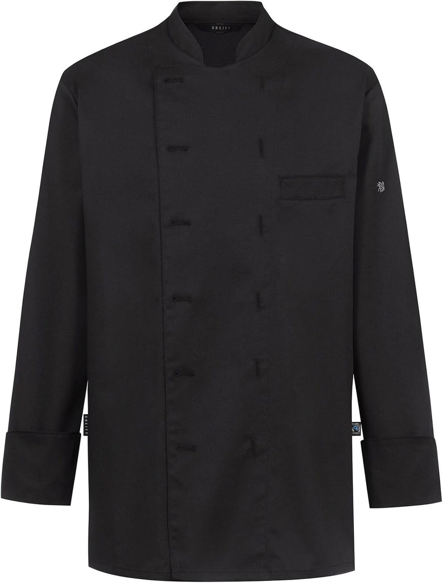 Greiff Gastro Moda Cuisine Herren Premium-Kochjacke Regular-Fit Schwarz M, Schwarz M