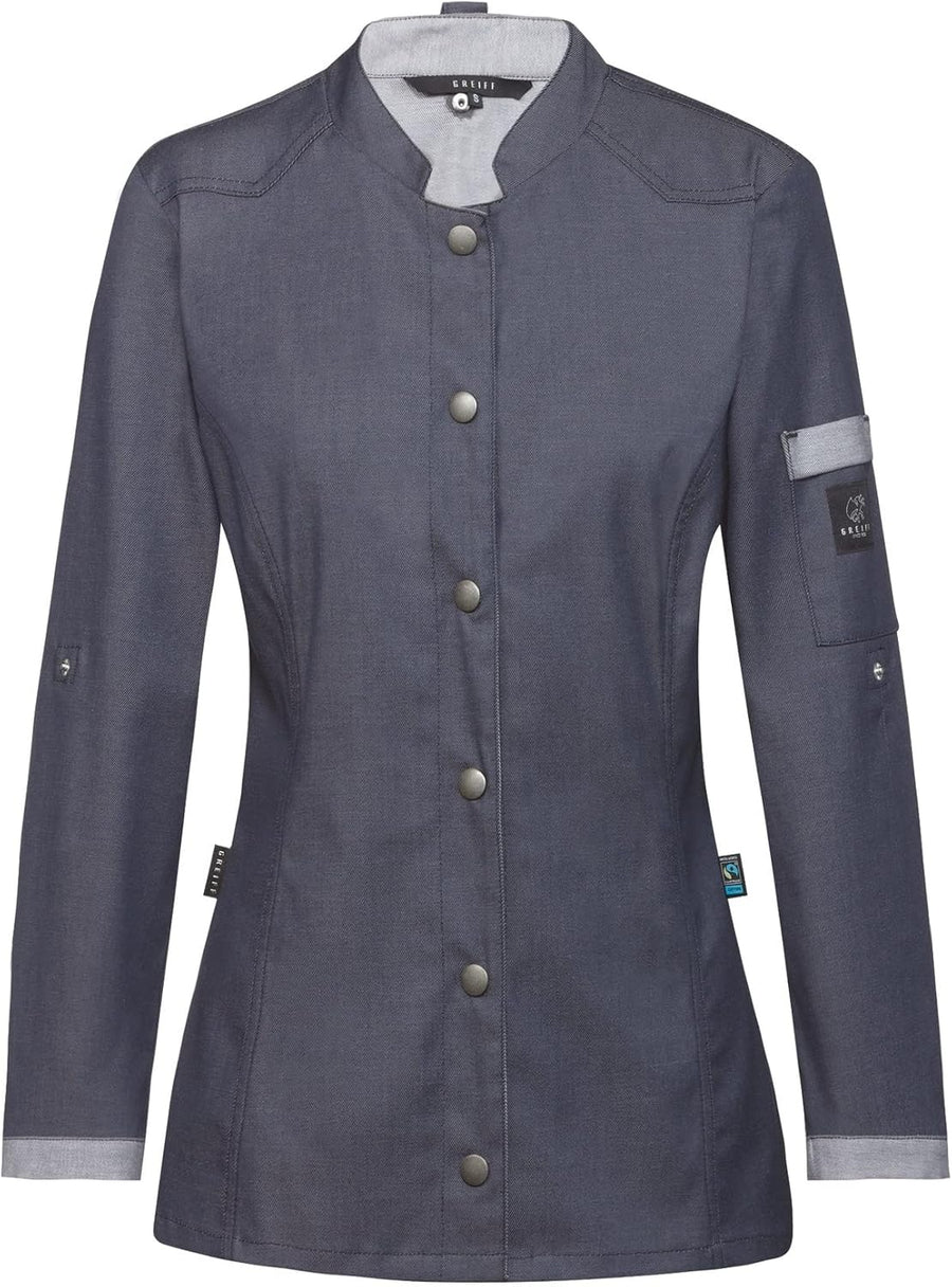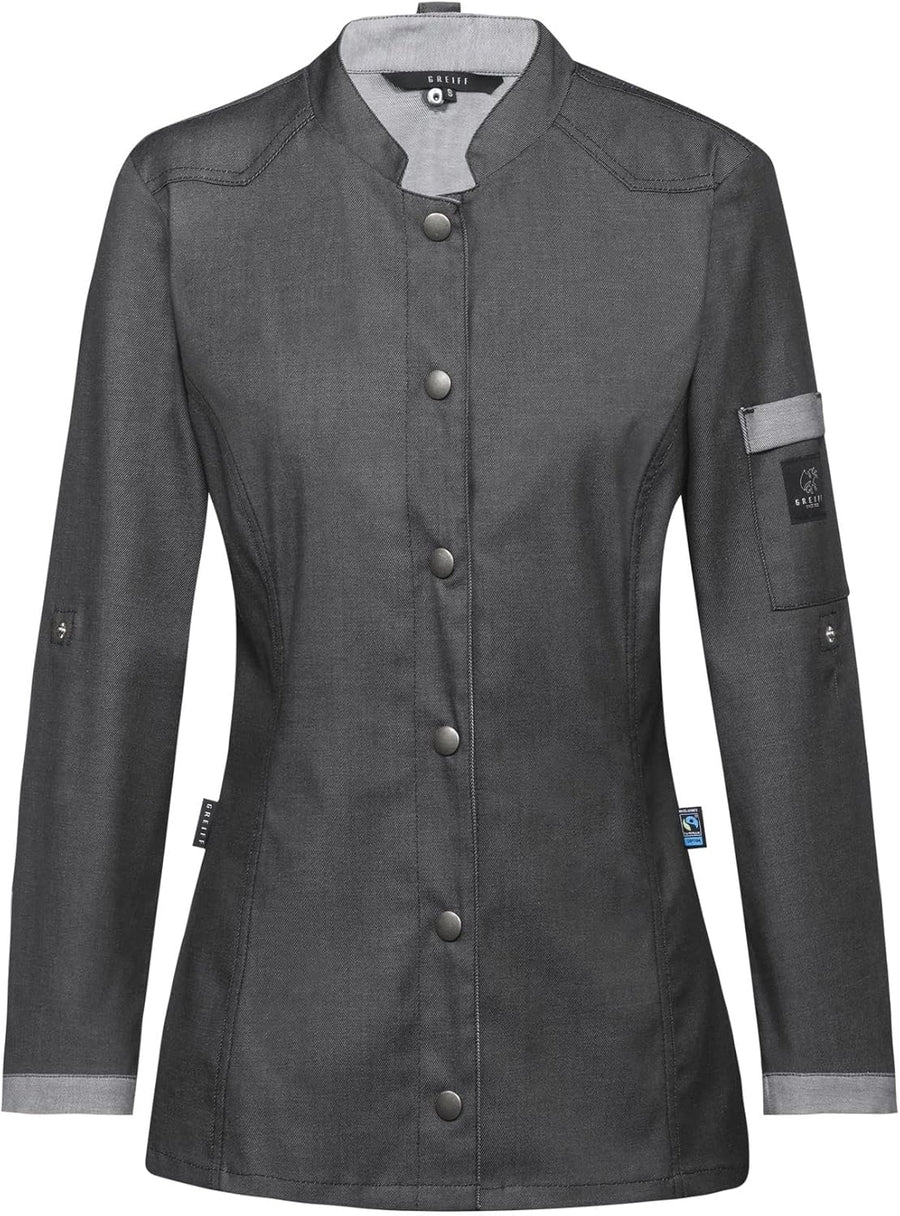 GREIFF Damen Kochjacke Im Bikerstyle Bäckerjacke Regular Fit Langarm mit Druckknopfverschluss XL Gra