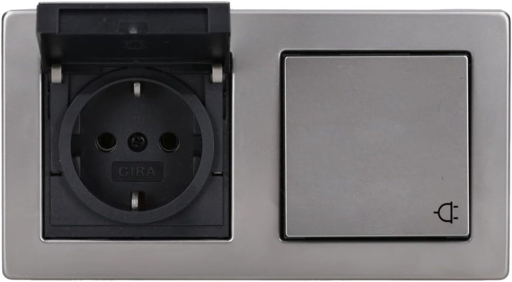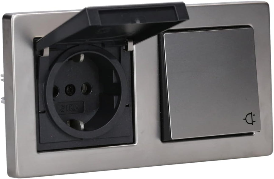 Gira Edelstahl Komplett-Set Klappdose – 2 x KlappSteckdose 0454600 inkl. 2fach Rahmen und Dichtungss