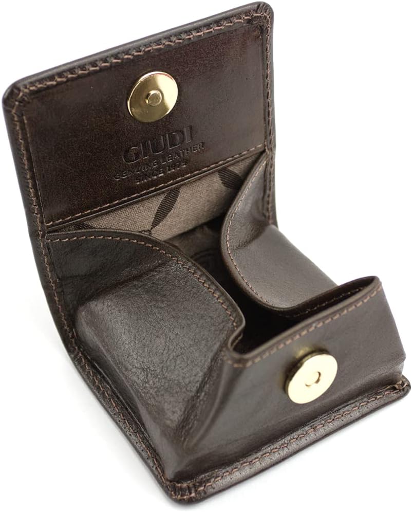 GIUDI ® Münzbörse mit Magnetverschluss Wiener Schachtel Pflanzlich gegerbtes Rindsleder (Dunkelbraun