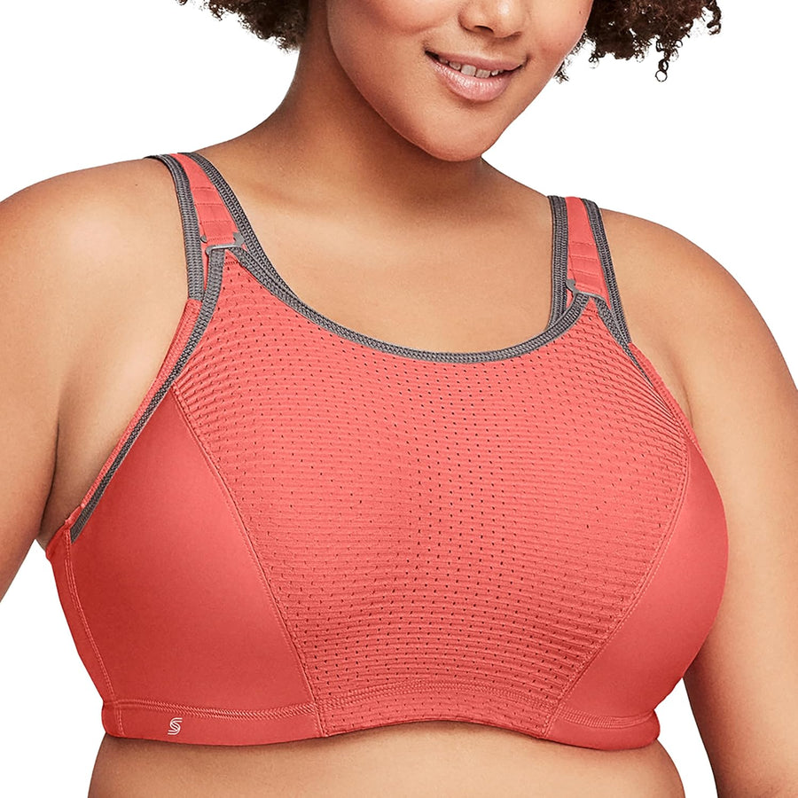 Glamorise Damen Verstellbarer Wonderwire-Hochleistungs-Sport-BH, Grau, 100B 80B Koralle/Grau, 80B Ko