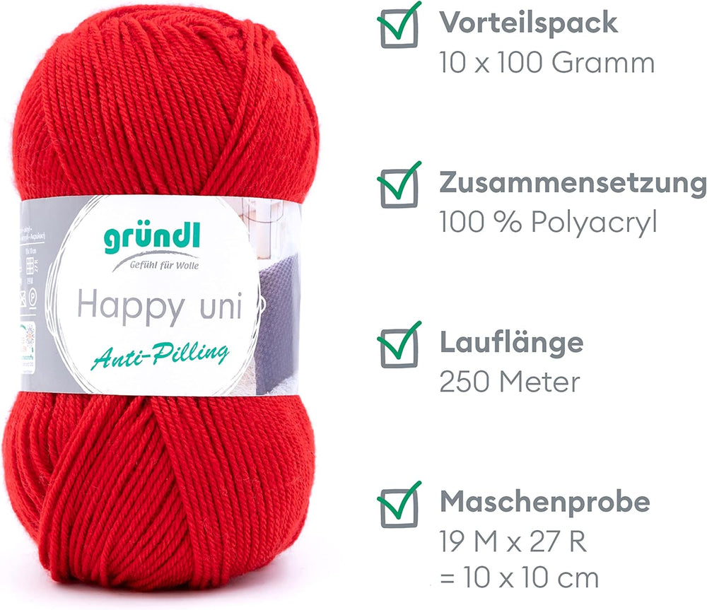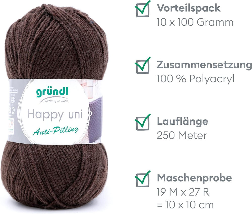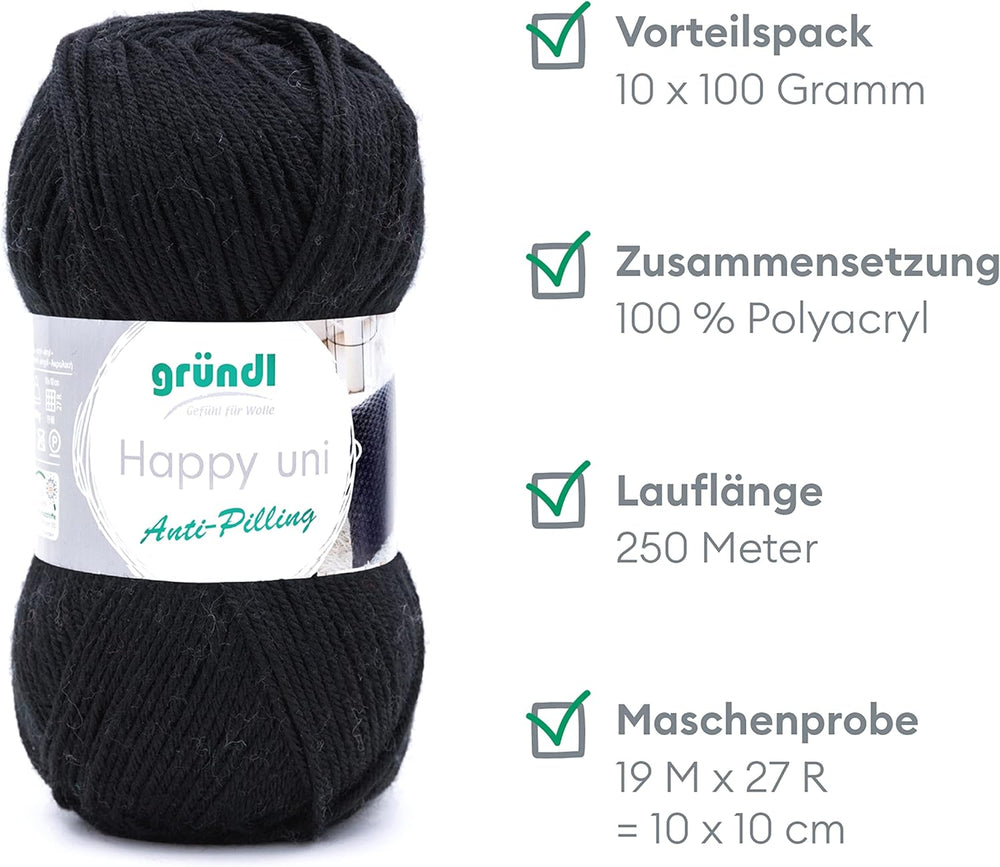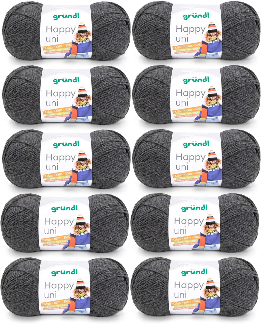 Gründl Happy uni (Strick- und Häkelgarn mit wollartigem Charakter aus 100 % Polyacryl, Anti-Pilling,