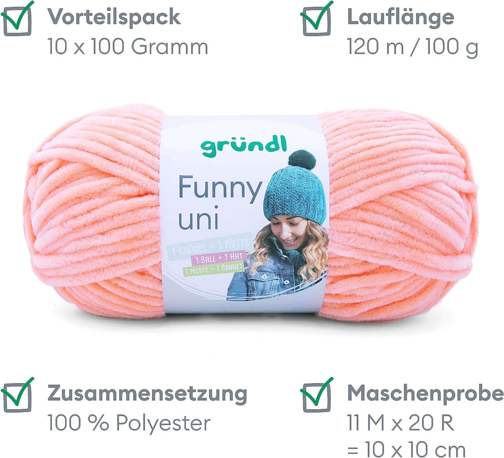 Gründl Funny uni Strick- & Häkelgarn (samtartiges Chenille-Garn aus 100% Polyester, 10 x 100 g / 120