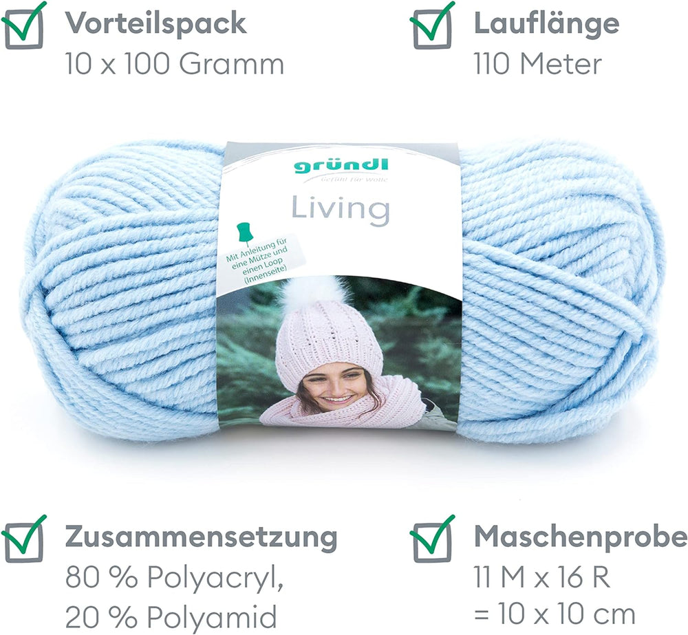 Gründl Garn Living (Strick- und Häkelgarn mit wollartigem Charakter, waschbares Garn aus 80 % Polyac