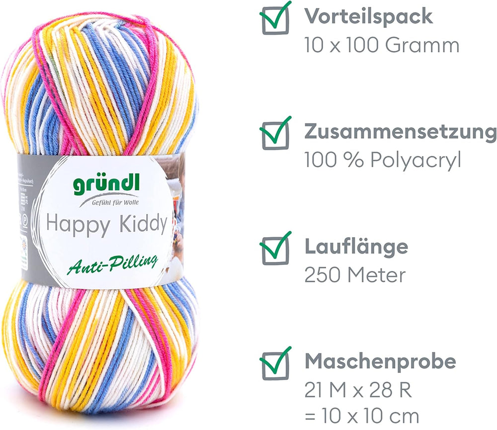 Gründl Happy Kiddy (Strick- und Häkelgarn mit wollartigem Charakter aus 100 % Polyacryl, Anti-Pillin