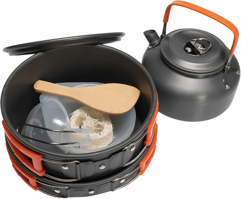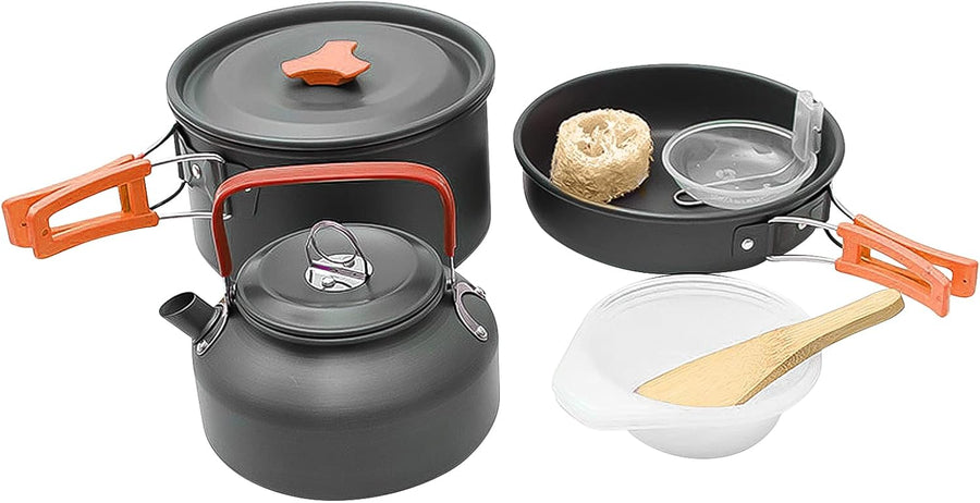 Grafner Premium Camping Kochgeschirr Set 11-teilig, stabiles Aluminium mit Antihaftbeschichtung, kle