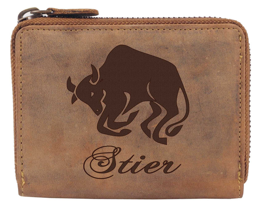 Greenburry Damen-Portemonnaie mit Stier Motiv I Lederbörse mit Sternzeichen Motiv I Vintage-Geldbeut