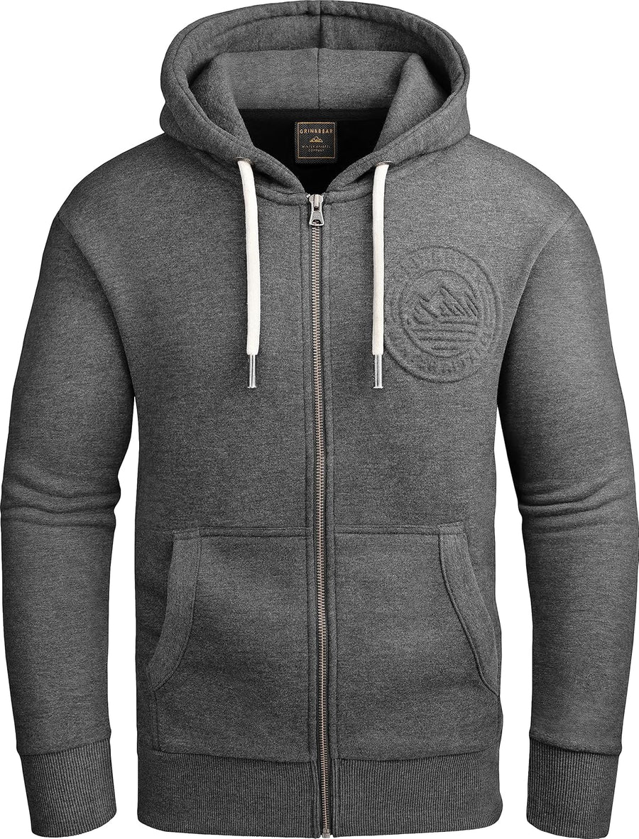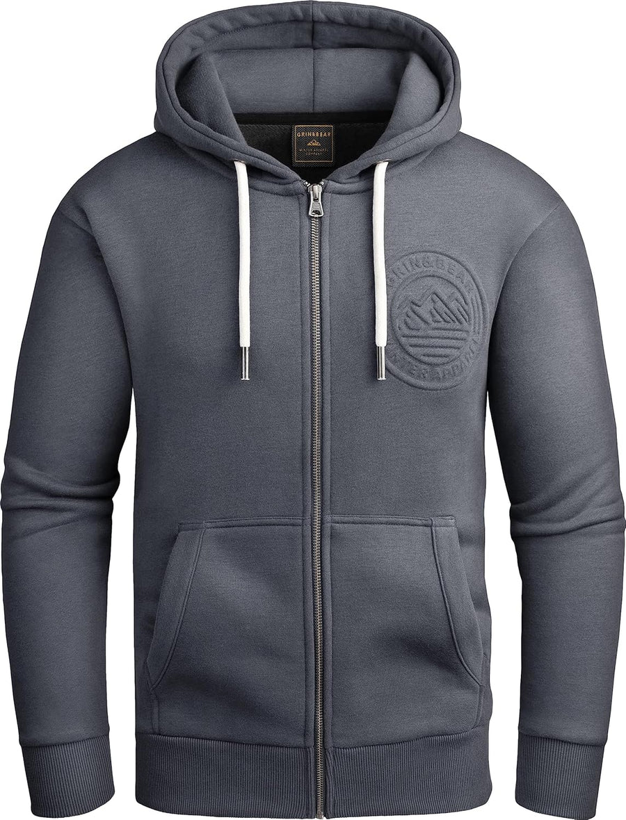 Grin&Bear Hoodie Herren Sweatshirt mit Reissverschluss GEC602 M Stahlgrau, M Stahlgrau