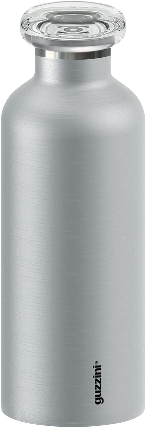 Guzzini - On The Go, ENERGY L Thermosflasche, Trinkflasche Edelstahl - Silber, Ø 8 x h24 cm | 750 cc