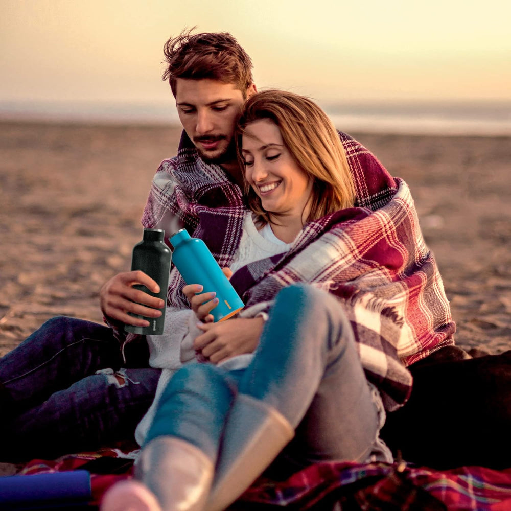 Guzzini - On The Go, ENERGY Thermosflasche, Trinkflasche Edelstahl - Schwarz, Ø 7,3x h21,2 cm | 500