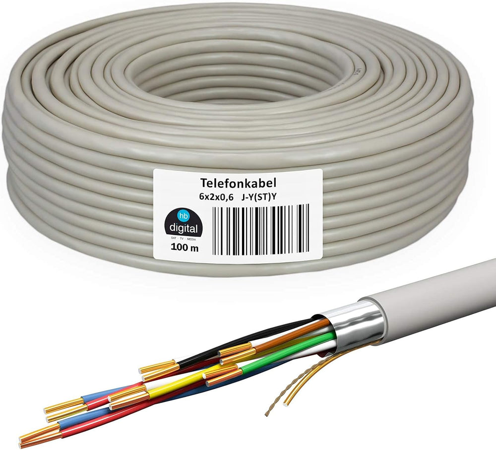 HB-DIGITAL Telefonkabel 100m 6 x 2 x 0,6 J-Y(ST) Y Verlegekabel JYSTY 12 Adern Telefonleitung 100m 6