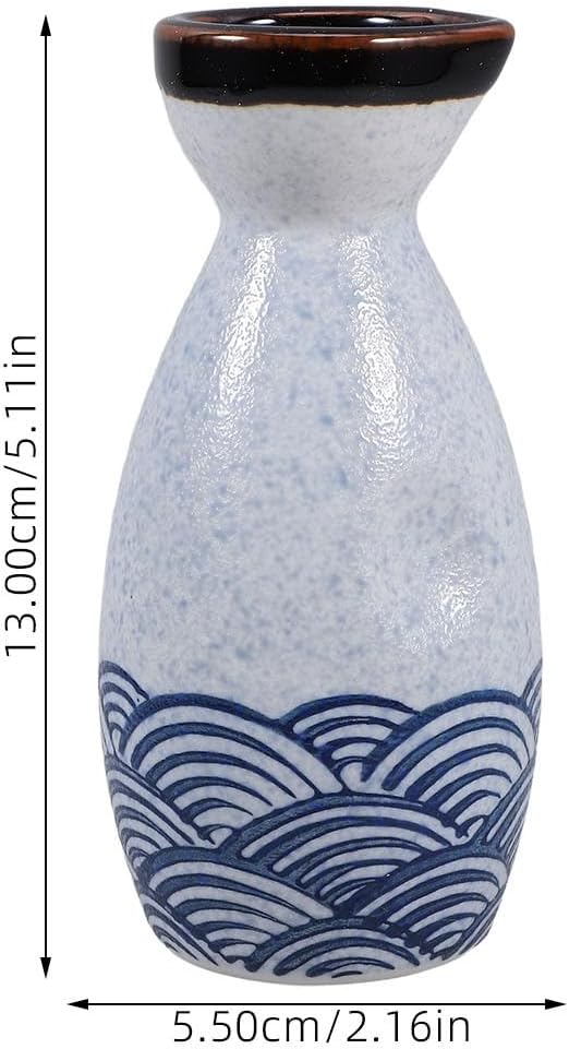 HEMOTON Keramik Sake Set Japanische Sake Flasche Und Vier Ochoko Tassen Glasiert Sea Ripple Sake für