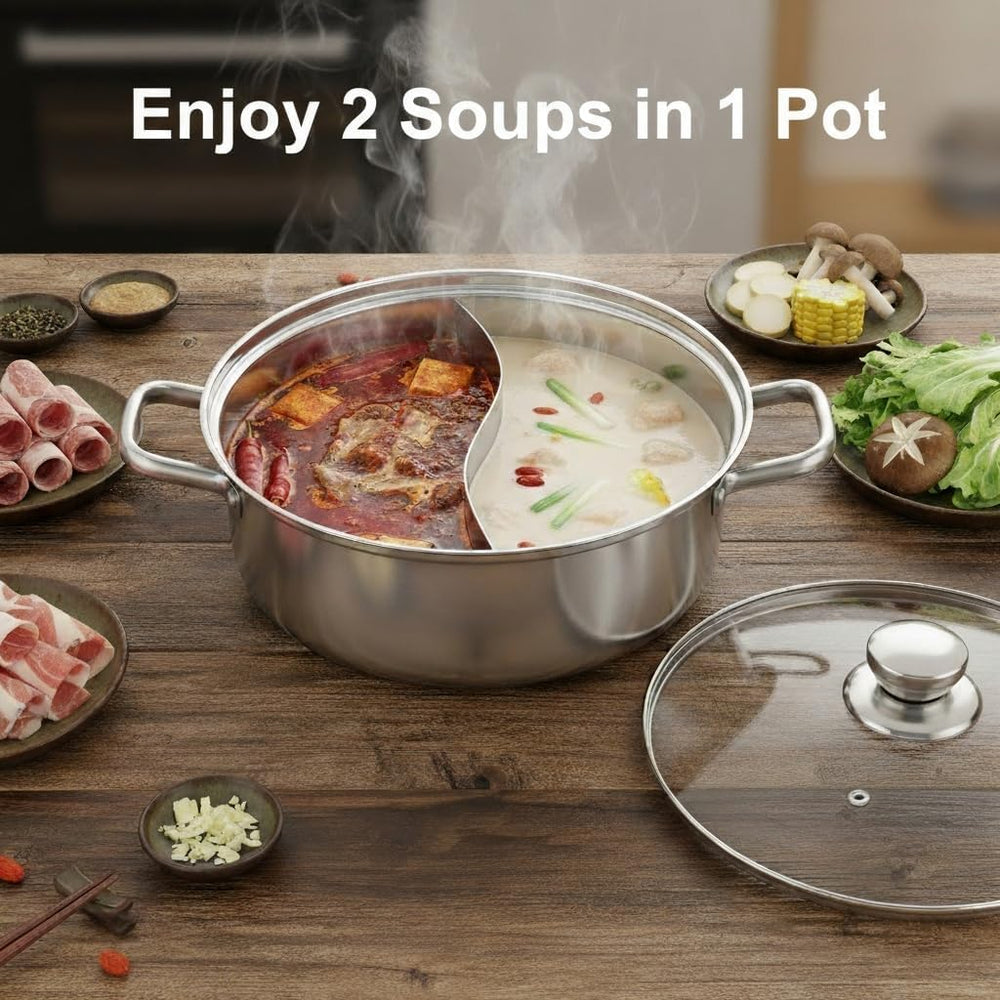 HEMOTON Hot Pot mit Trennwand Edelstahl Shabu Shabu Topf mit Glasdeckel Kochgeschirr Set Hot Pot Sup