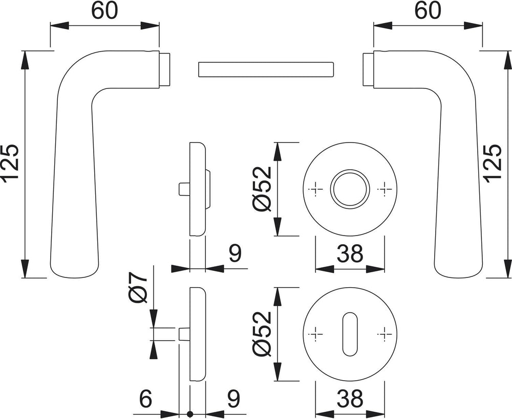 HOPPE 3760911 Drückergarnitur LIÈGE - auf Schmalschild, Türstärke 67-72, silber eloxiert, silber elo