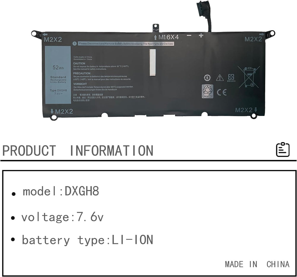 DXGH8 G8VCF H754V 0H754V P82G001 Laptop Batterie Ersatz für Dell XPS 13 9370 9380 Inspiron 13 7390 7