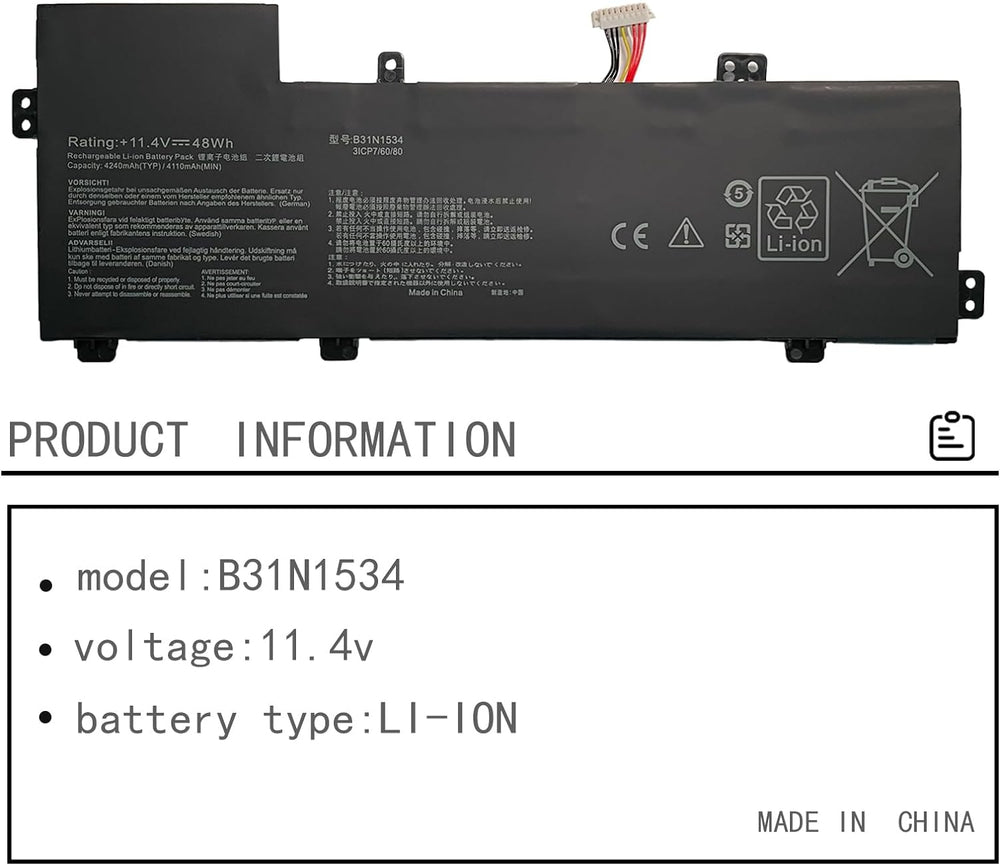HUBEI B31N1534 0B200-02030000 Laptop Batterie Ersatz für Asus Zenbook UX510 UX510UW UX510UW-1A UX510