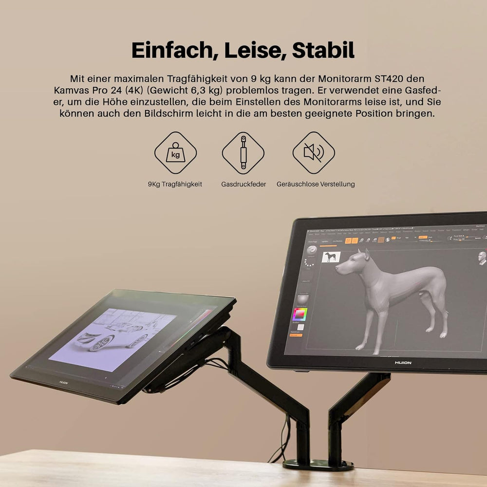 HUION ST420 Dualer Monitorständer, Desktop-Ständer mit Einstellbarer VESA-Halterung, kompatibel mit