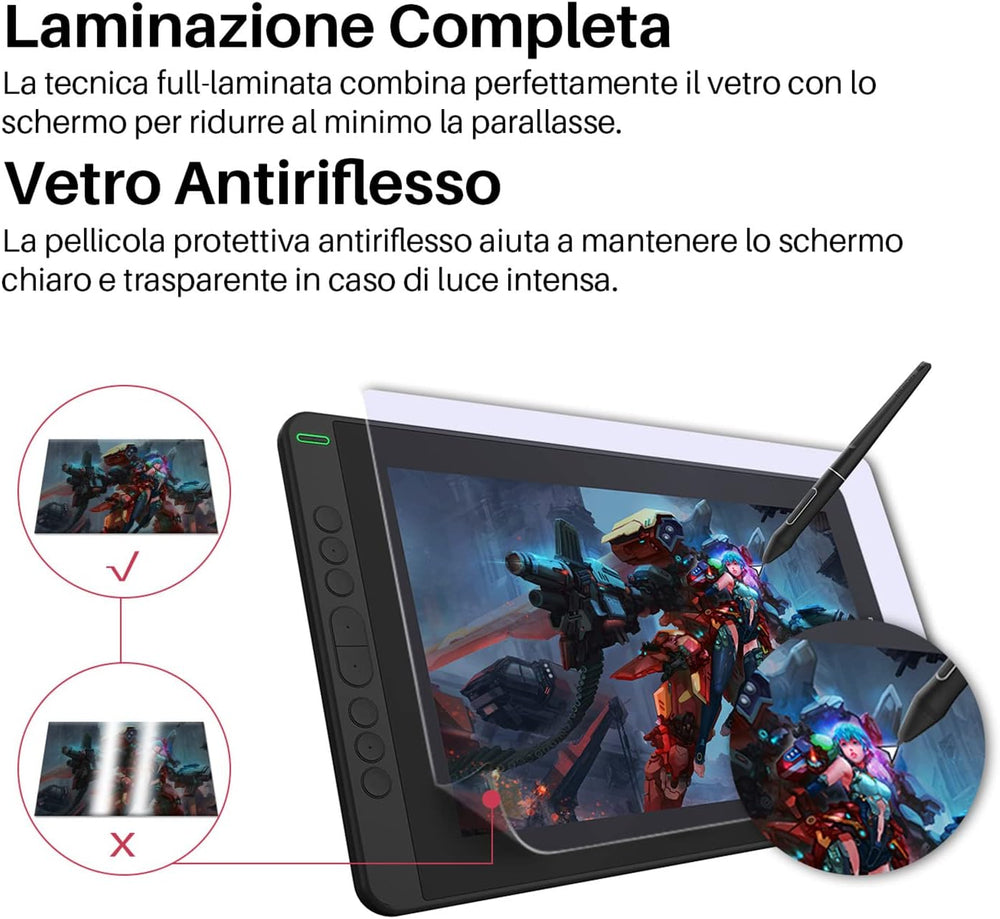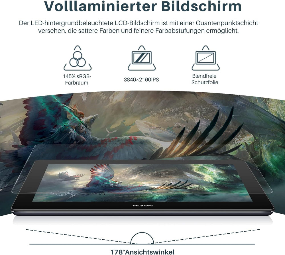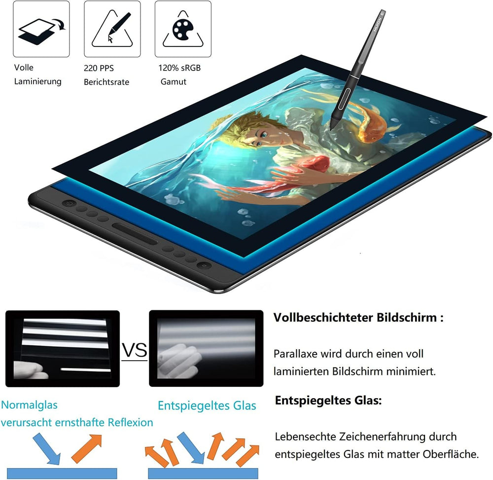 HUION Kamvas Pro 16 15,6-Zoll-IPS-Display Grafiktabletts mit voll laminiertem, blendfreiem Glasbilds