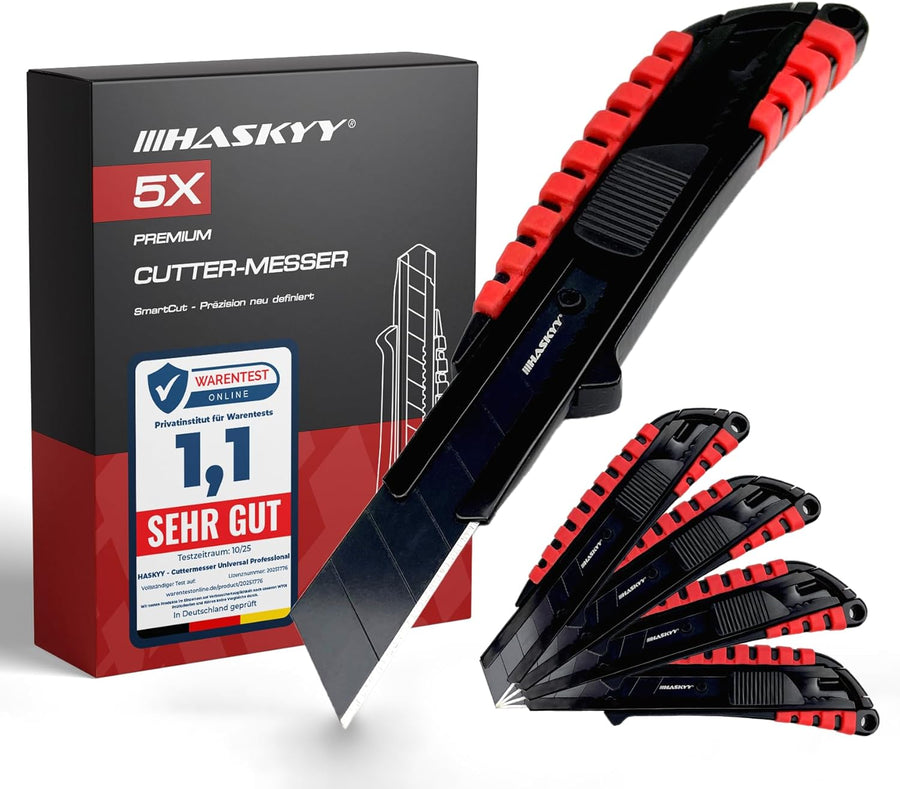 HASKYY Cuttermesser Teppichmesser Universal Professional Set 5x Cutter Messer 18mm mit Extra scharfe