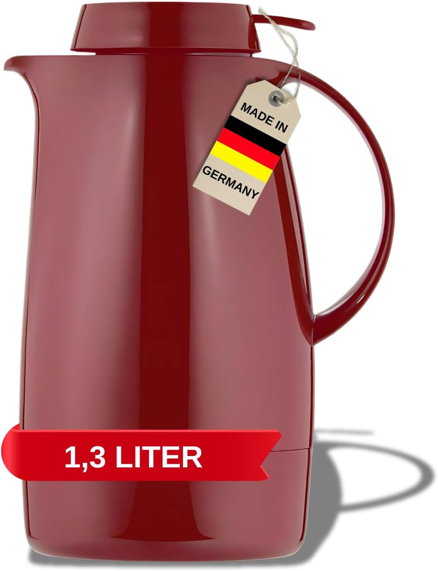 Helios Servitherm Thermoskanne Rot 1,3L – 6h Heiss - Hält Getränke heiss & kalt – Einhandbedienung -