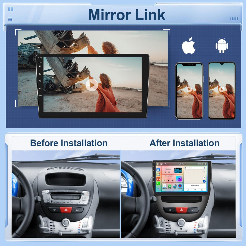 【8 Kern 4+64G】 Hodozzy Carplay Autoradio für Toyota Aygo/Peugeot 107/Citroen C1 2005-2014, 10.1 Zoll