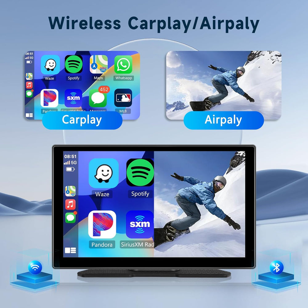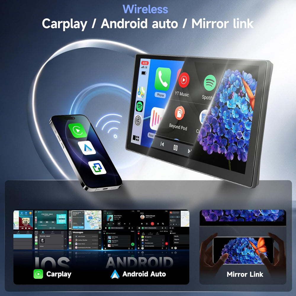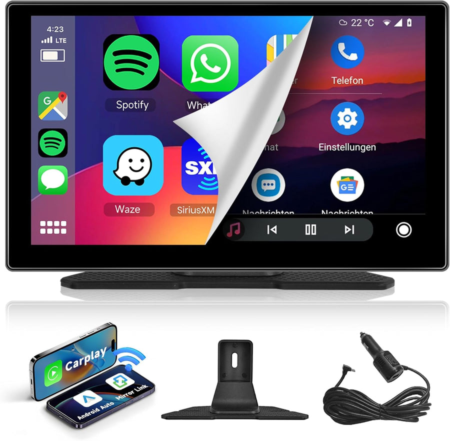 Hodozzy Tragbares Autoradio Wireless CarPlay Display Android Auto, Airplay Mirror Link, 9 Zoll Touch