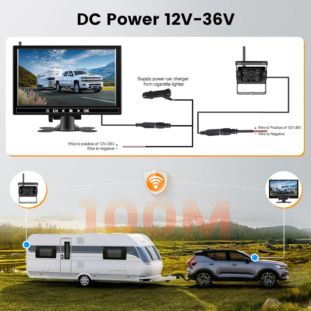 Kabellos Rückfahrkamera und 7-Zoll-HD-Monitor, Set Rückfahrkamera Wireless Fahrzeuge Parkassistenzsy