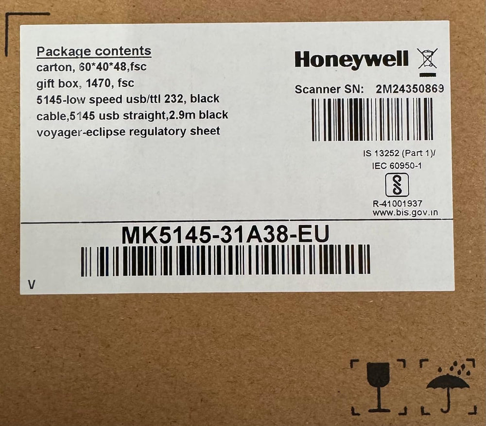 Honeywell MK5145-31A38-EU USB Kit: black scanner (MS5145-38-3), 1.5m USB Type A cable (55-55235B-N-3
