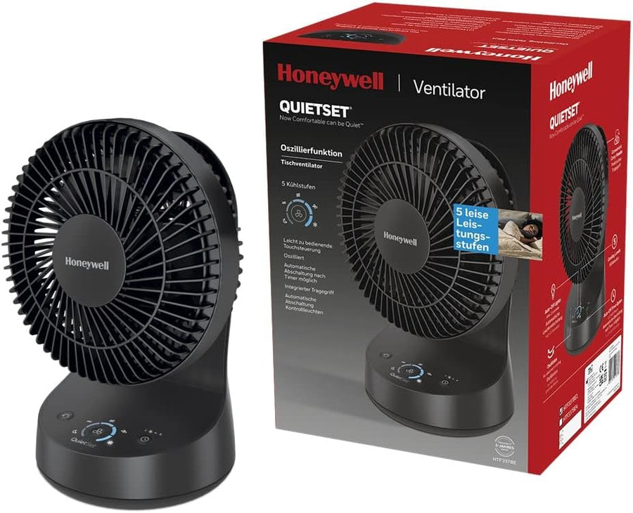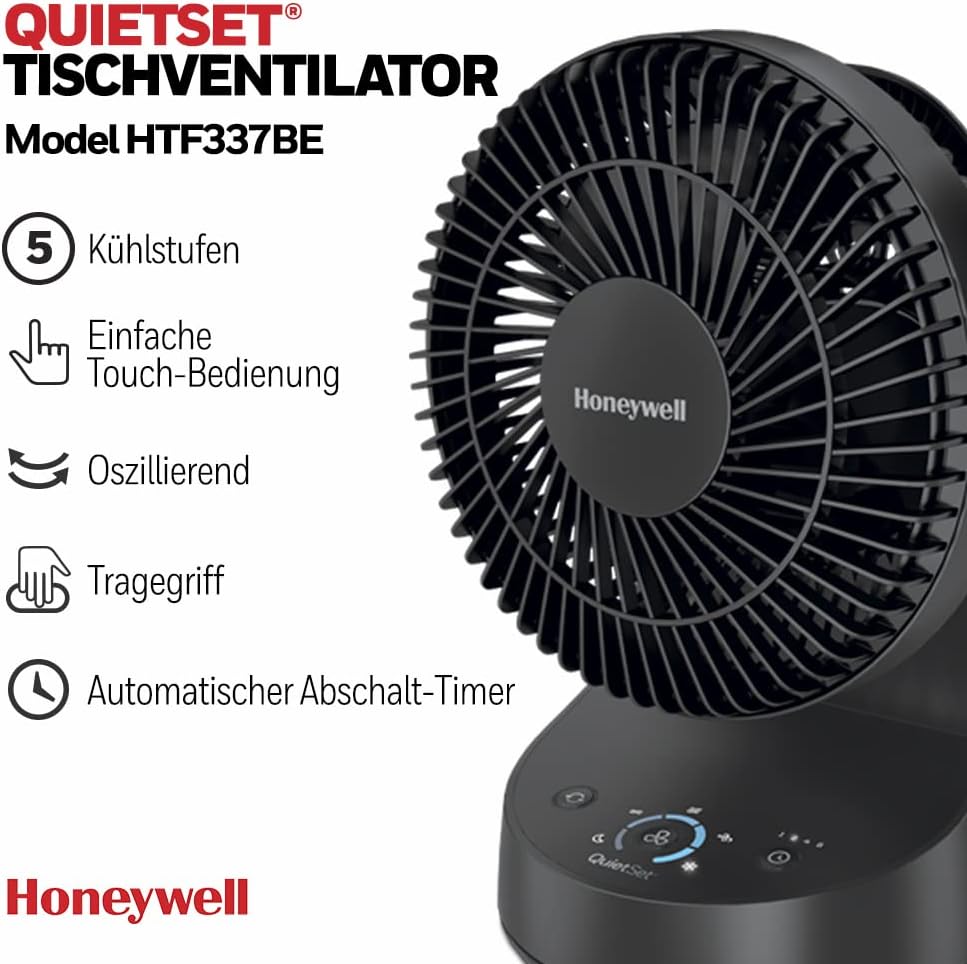 Honeywell QuietSet Oszillierender Tischventilator in Schwarz – Ventilator für einzelne Benutzer und