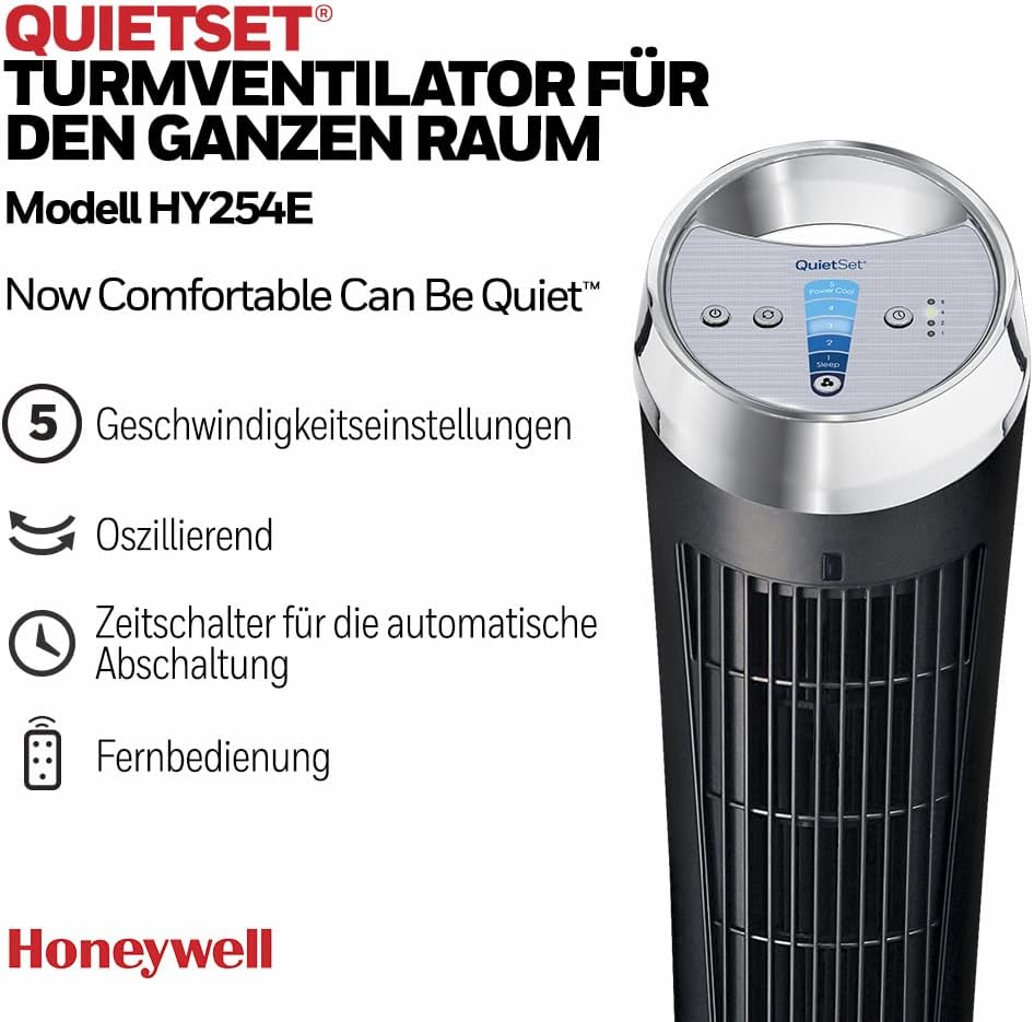 Honeywell QuietSet Turmventilator (5 Geschwindigkeitseinstellungen, Oszillation 75°, Timer-Funktion,