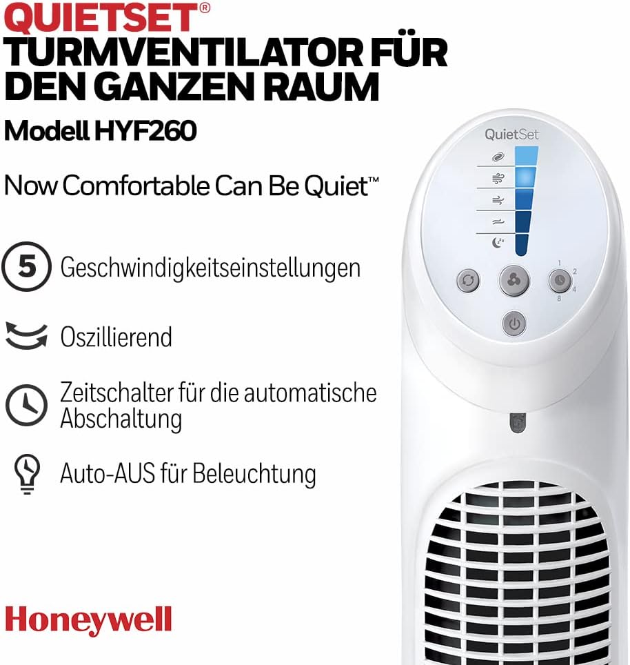 Honeywell HYF260E4 Quiet-Set Turmventilator (mit Fernbedienung, 1 Stück) & HT-900E Kraftvoller und g
